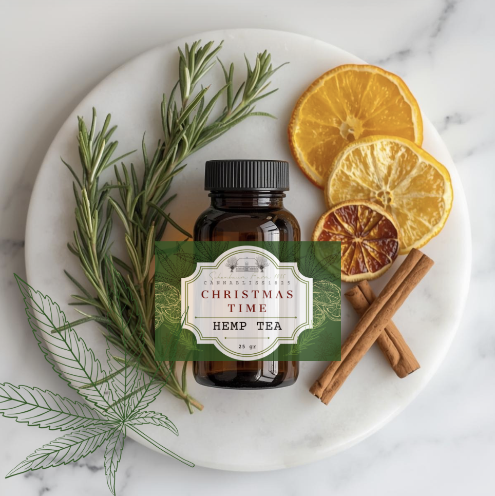 Herbata z konopi to nic innego jak napar z suszonych liści konopi z dodatkiem skórki pomarańczowej, imbiru, rozmarynu, suszonego jabłka, anyżu gwiazdkowego i cynamonu, owoc bzu.