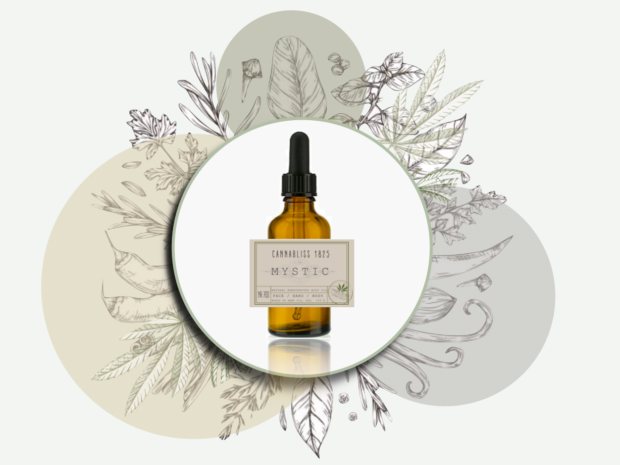 Mystic to lekki olejek do twarzy i ciała bazujący na naszym ekologicznym oleju konopnym i z dodatkiem olejku konopnego, który ma cudowne właściwości regeneracyjne dla skóry. Zawiera 1 gr 15% olejku konopnego. Oprócz oleju konopnego dobraliśmy tak pozostałe oleje roślinne by uzupełniały swoje właściwości i zapewniały pielęgnacje i ukojenie nie dla zmęczonej i dojrzalej skóry. Ma właściwości regeneracyjne, przeciwstarzeniowe.