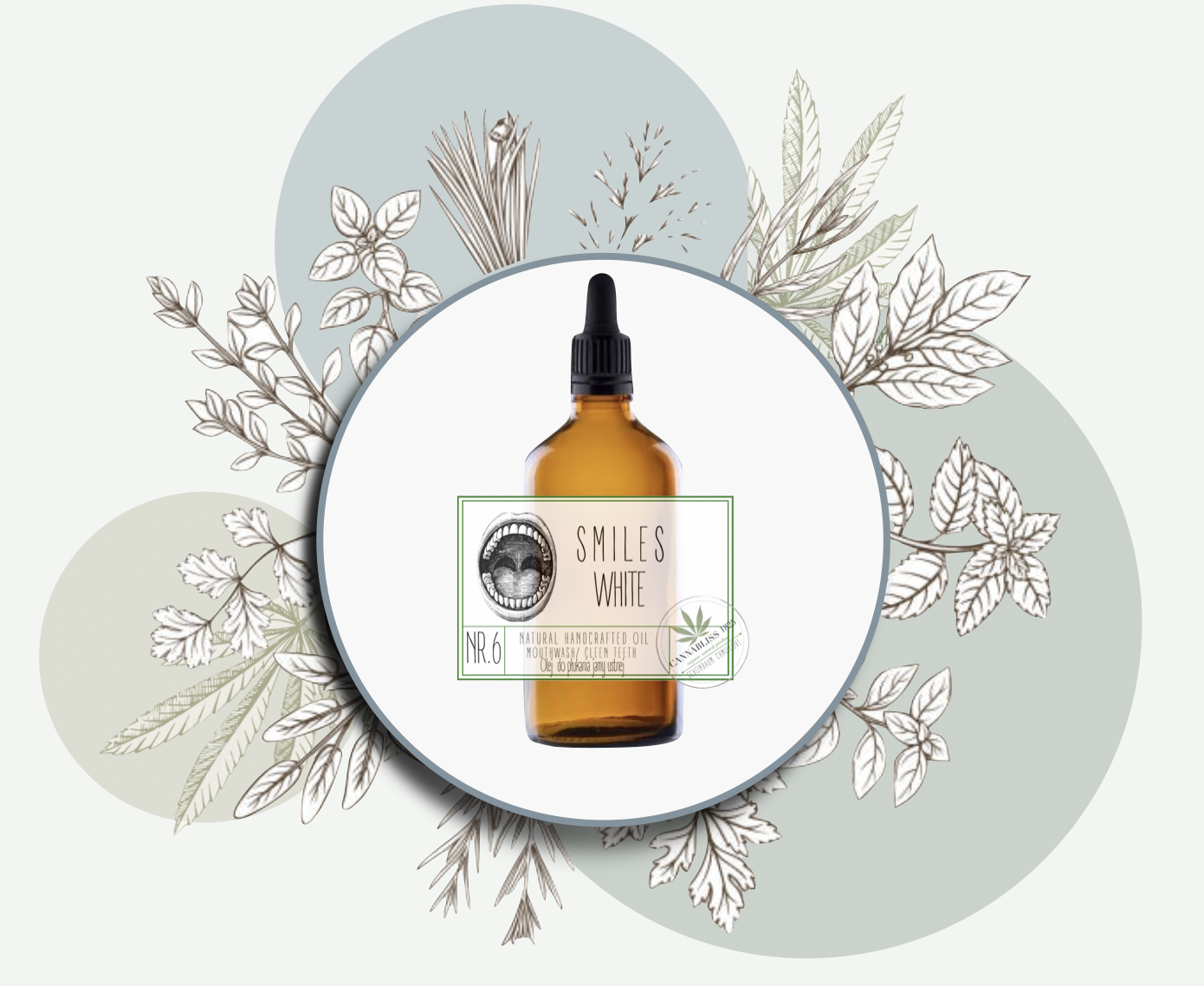 Bazą olejku jest płynny olej kokosowy oraz olej konopny i sezamowy. Doatkowe naturalne olejki eteryczne mięty pieprzowej , tymianku i oregano.