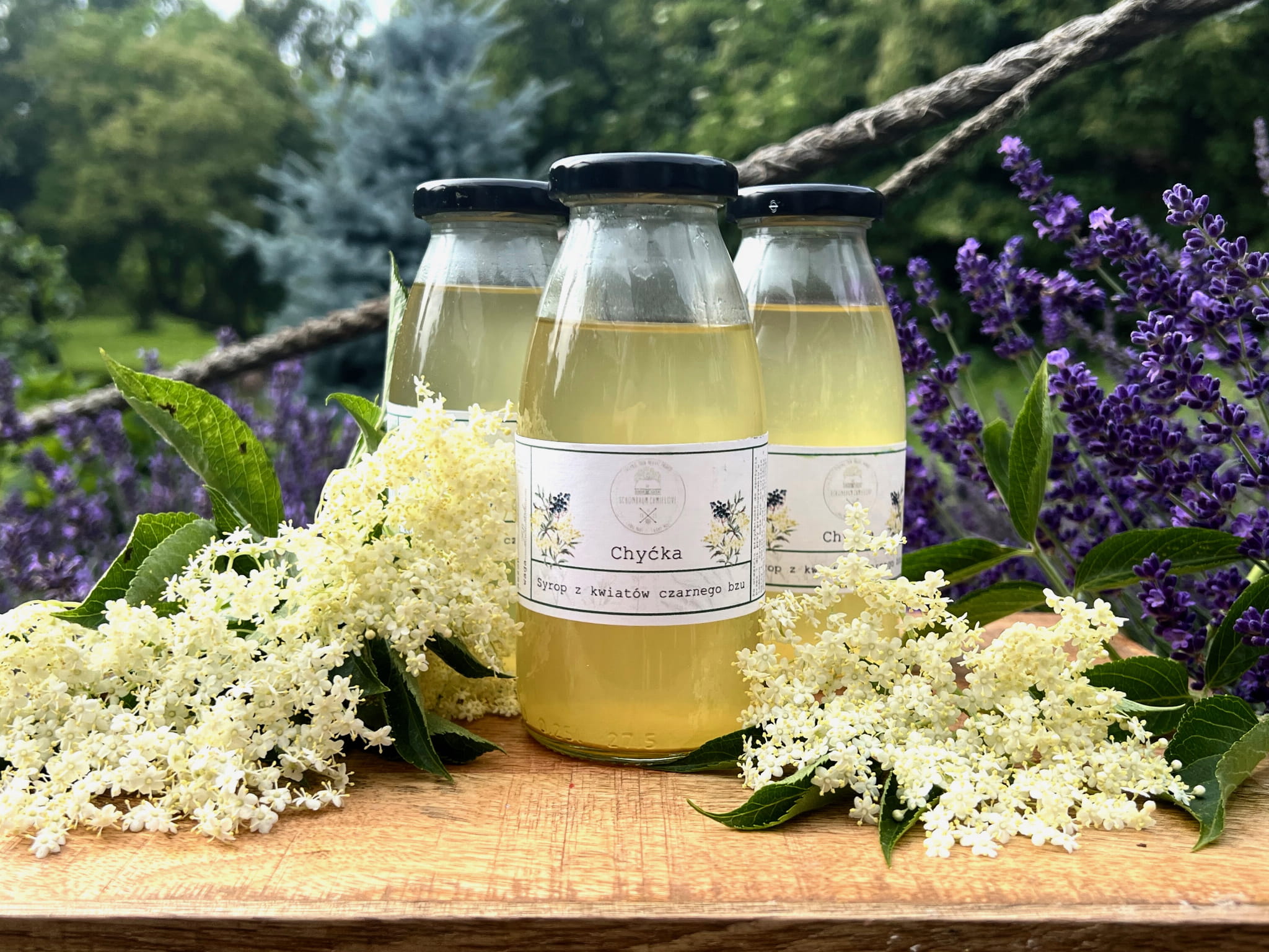 Skład: kwiaty czarnego bzu, woda , cukier trzcinowy, sok z cytryny